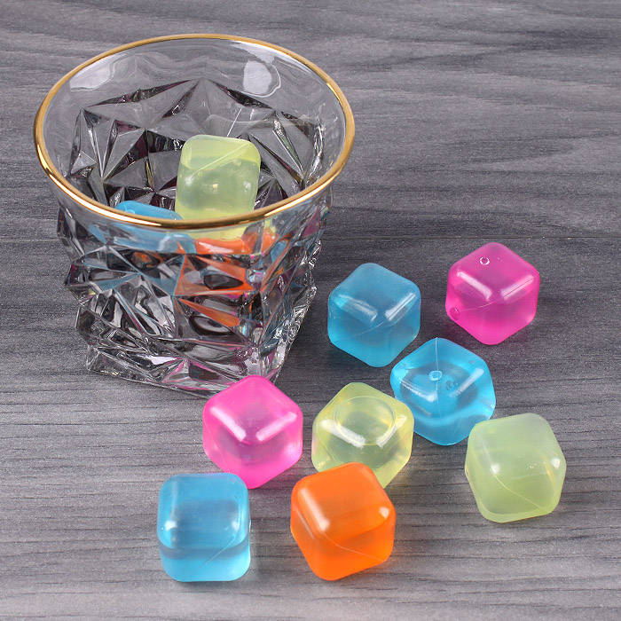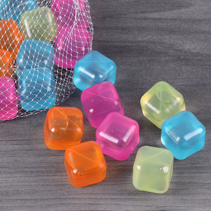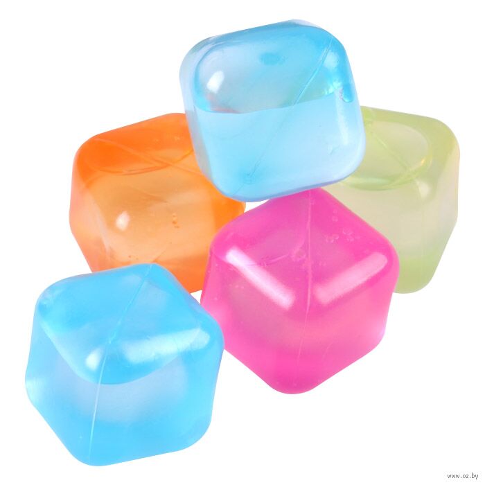 Изготовлены из пластика и заполнены водой. Перед применением нужно промыть кубики проточной водой. Затем поместить их в морозильную камеру на 1 час или более. Вынуть и поместить в напиток для охлаждения. После использования кубиков снова промыть в воде.