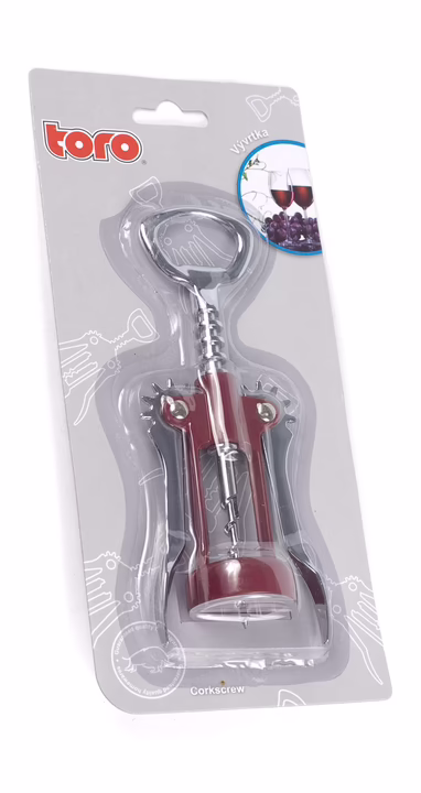 Штопор используется для открывания бутылок с пробками. Штопор имеет рычажный механизм с "крыльями", который позволяет легко без усилий открыть любую бутылку.