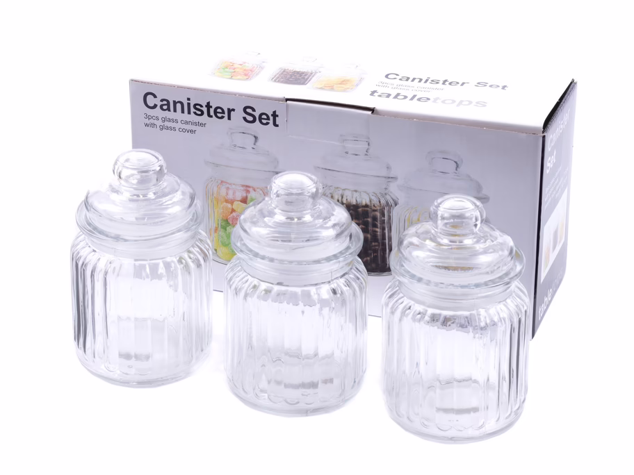 Набор банок стеклянных для сыпучих продуктов необходим для хранения различных круп.