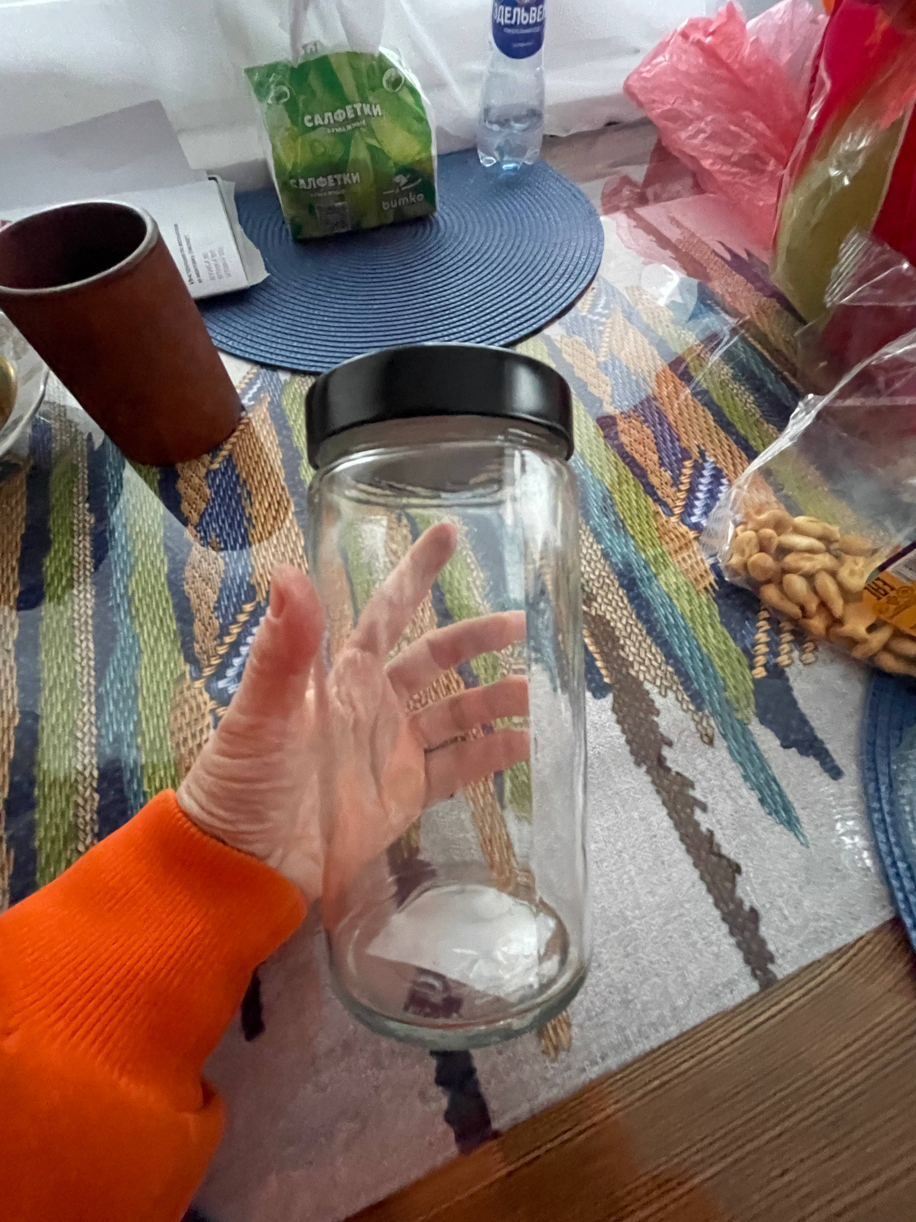 Банка стеклянная с винтовой крышкой.