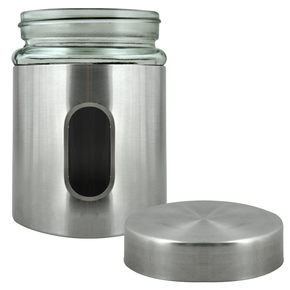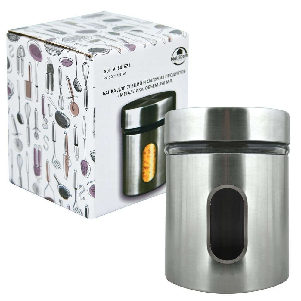 Изготовлено: банка из стекла, декоративная накладка и крышка из коррозионностойкой (нержавеющей) стали.
