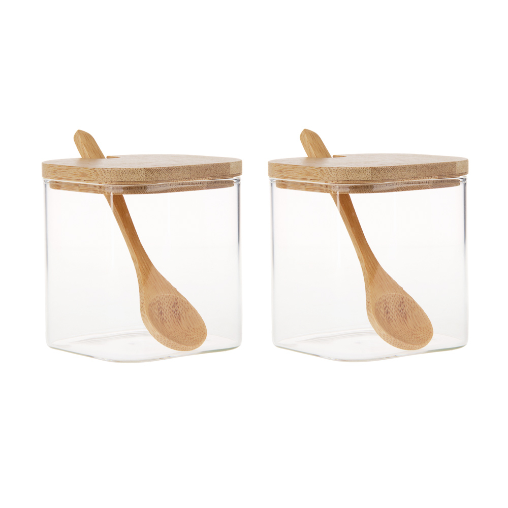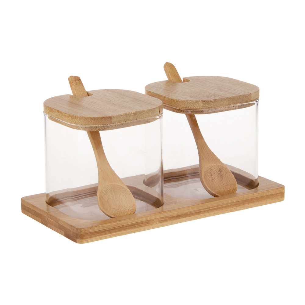 Набор банок для хранения VETTA состоит из двух емкостей объемом 350 мл с крышкой и ложкой, а также подставки. Подходит для хранения сыпучих пищевых продуктов: орехов, круп, сахара, соли, специй или чая.
