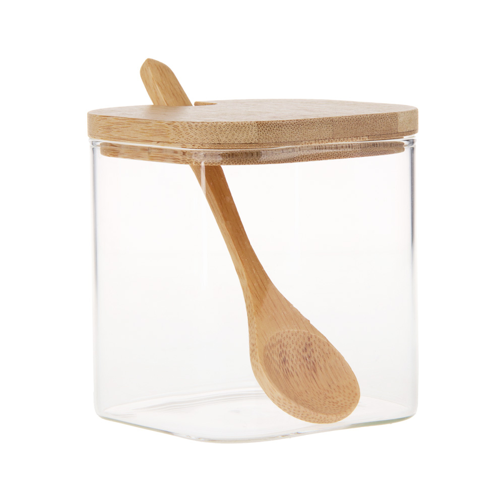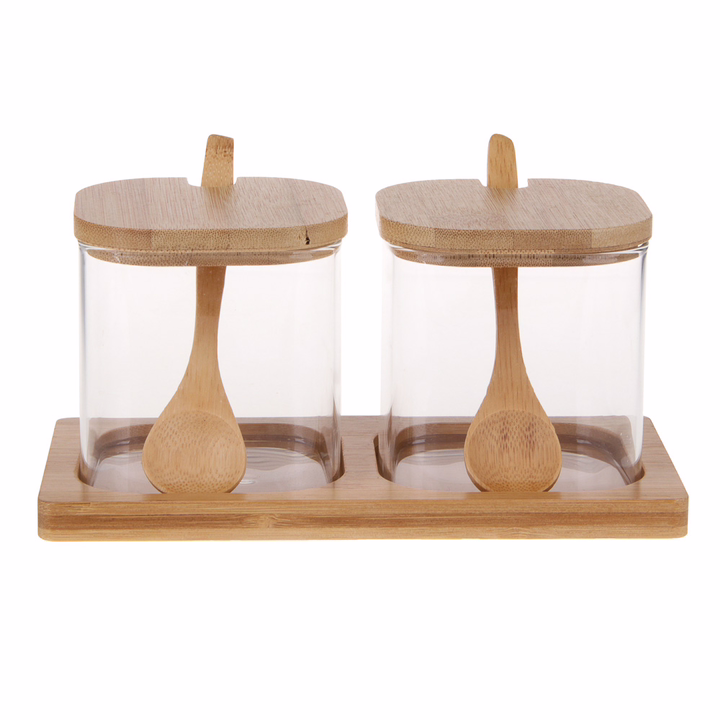 Набор выполнен из качественного и прочного стекла и натурального бамбука.