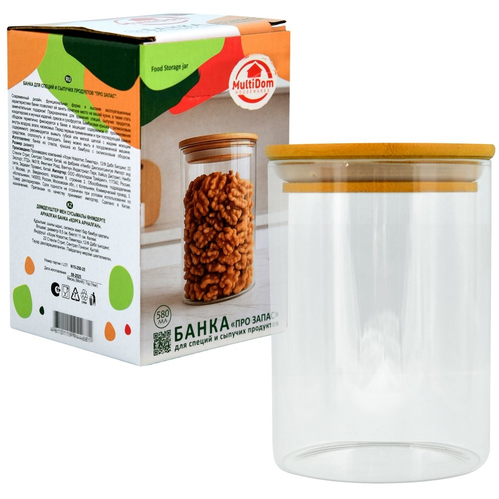 Бамбуковая крышка с силиконовым ободком герметично фиксируется в банке и защищает содержимое от проникновения внутрь воздуха, влаги, насекомых.