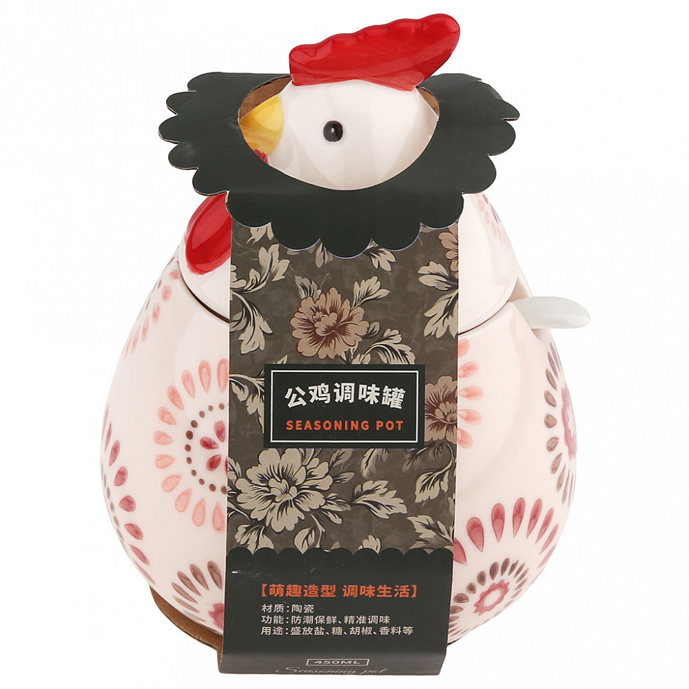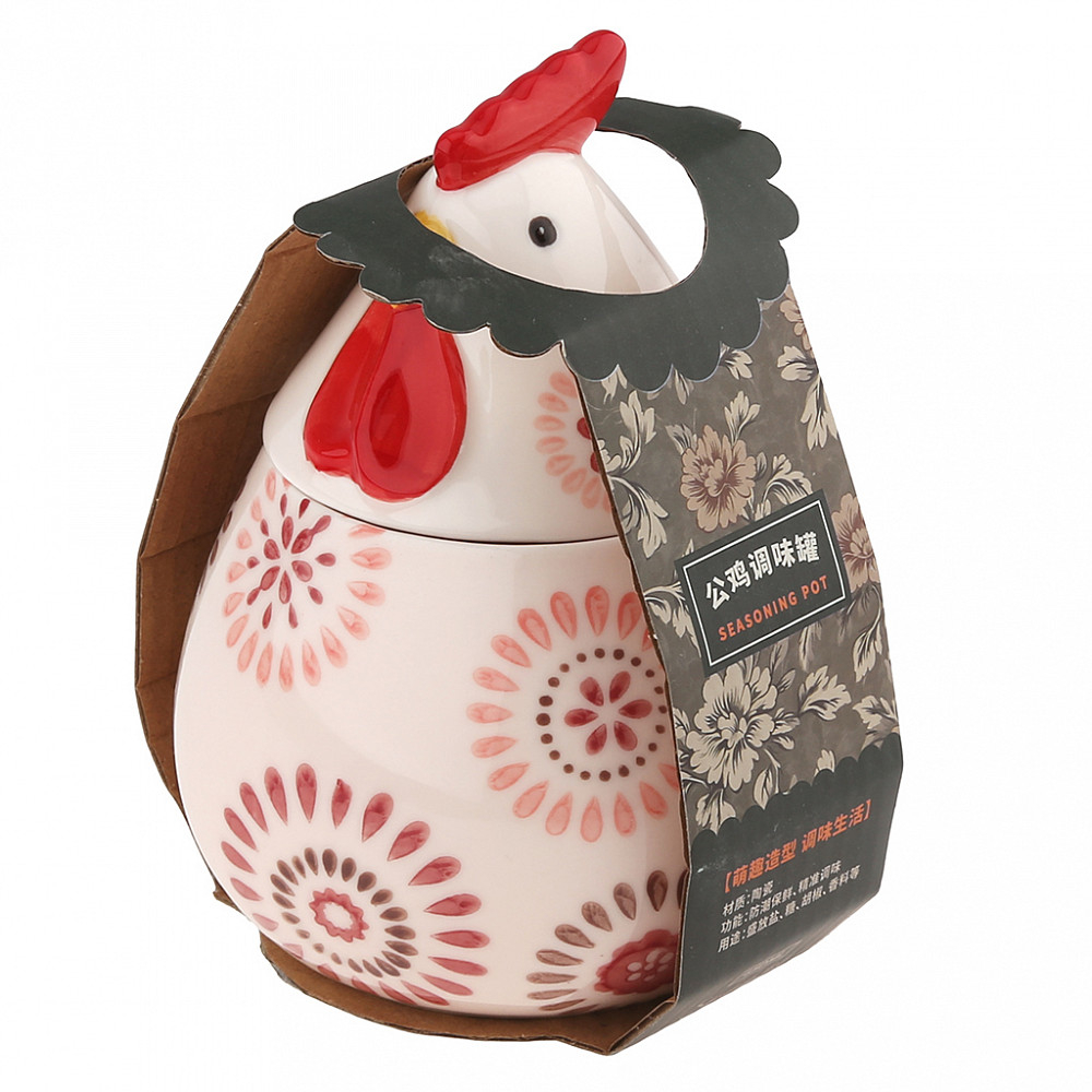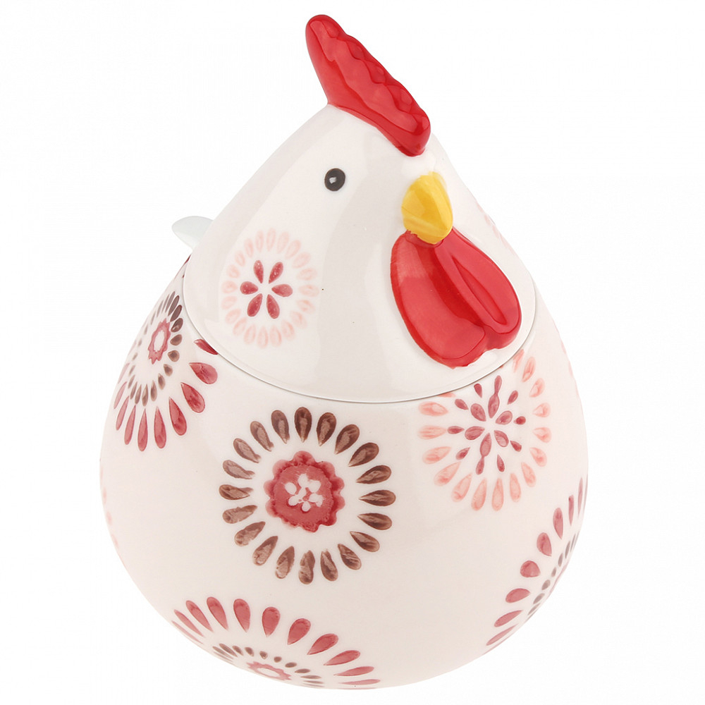 Стильная банка для хранения сыпучих продуктов с керамической крышкой в виде головы петуха станет ярким акцентом на вашей кухне.