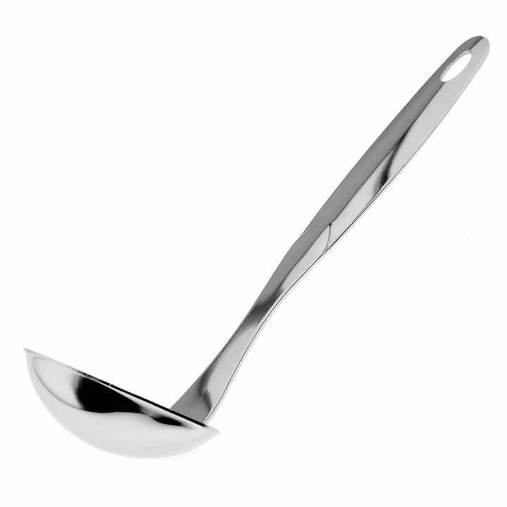 Даже обычный половник можно сделать максимально удобным, особенно если это половник для блинов. Таким приспособлением удобно зачерпывать тесто и равномерно распределять его по сковороде. Два носика и неглубокая конструкция обеспечивают удобство использования.