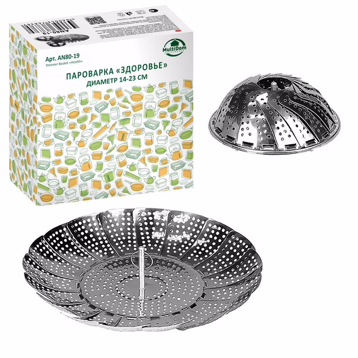 Блюда, приготовленные на пару, сохраняют больше полезных веществ. С помощью пароварки "Здоровье" вы приготовите овощи, котлеты, крупы, мясо, рыбу, манты или пельмени, затратив на это минимум усилий. Приспособление имеет складную конструкцию. Перед использованием раздвиньте металлические пластины, поместите на них продукты и поставьте сверху на подготовленную ёмкость с кипящей водой.