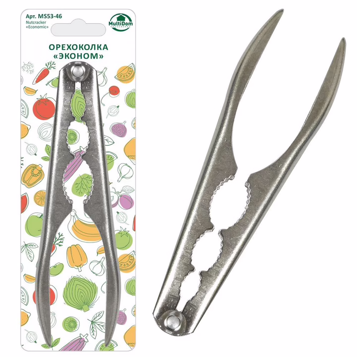 Щипцевидная орехоколка – это самая популярная модель для использования в бытовых условиях. Изделие используется для раскалывания орехов и косточек различных плодов. Бытовая орехоколка максимально сохраняет целостность продукта, имеет несколько отверстий для орехов разных размеров, выполнена из прочного материала – нержавеющей стали.