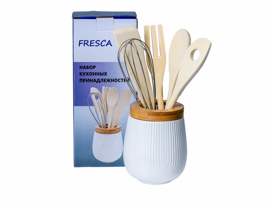 Выполнен из высококачественного фарфора и натурального бамбука.