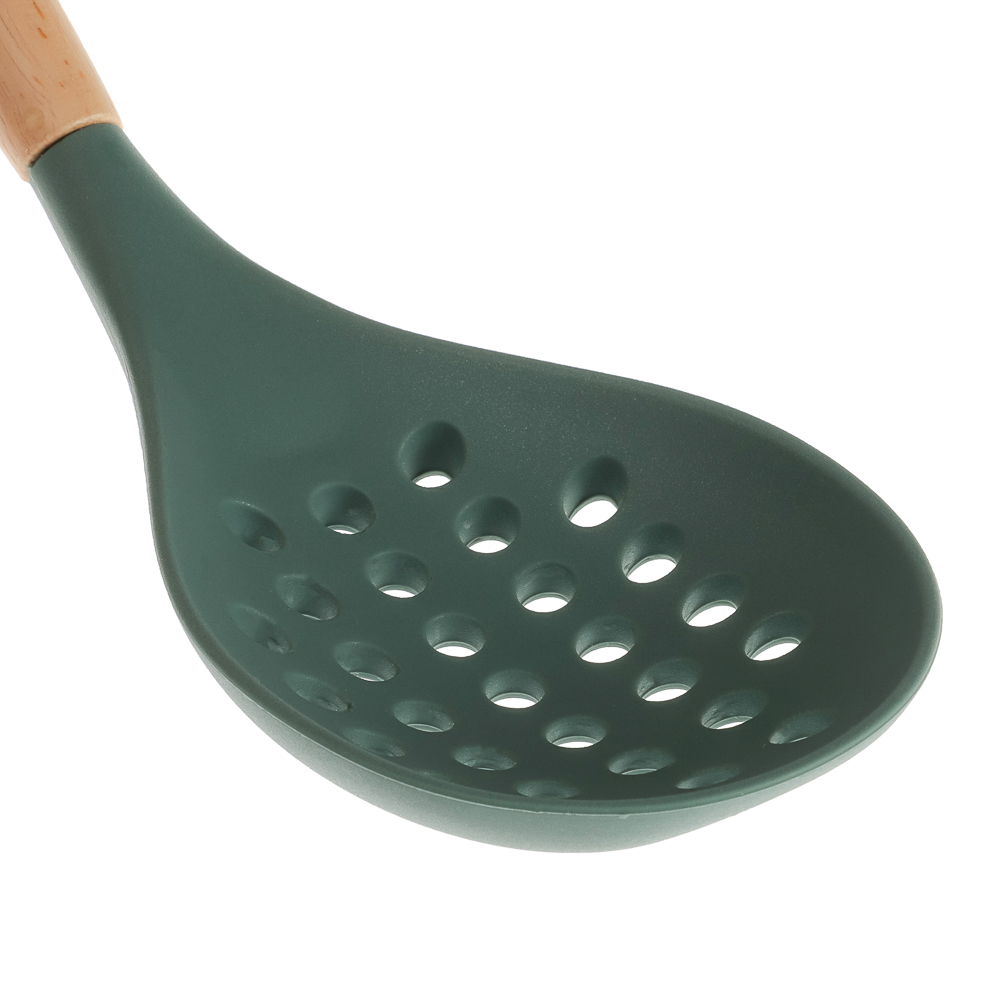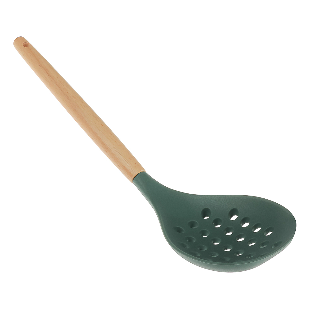 Набор кухонных принадлежностей "Эрно" – практичный и стильный комплект для кухни, выполненный в зеленом цвете с деревянными ручками.