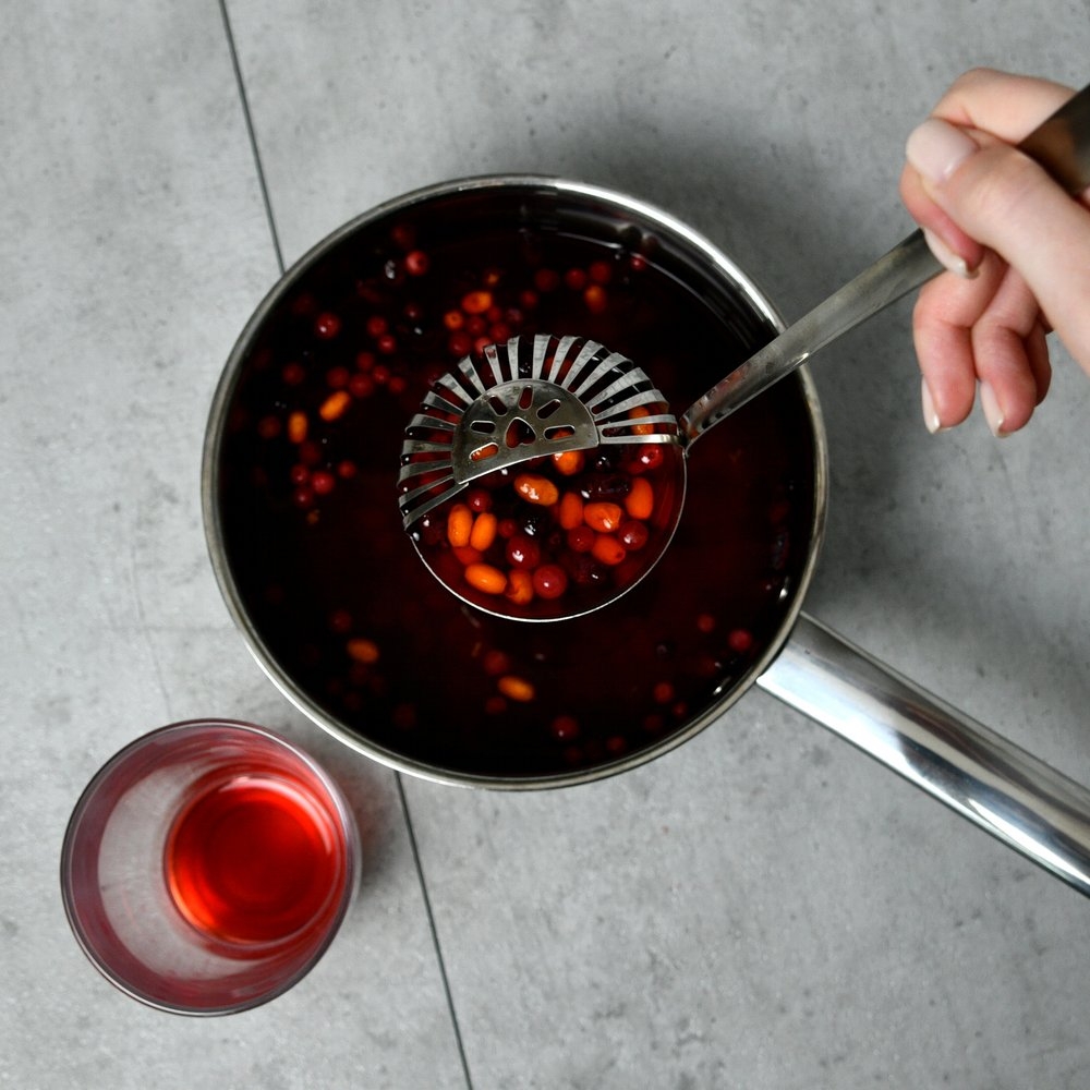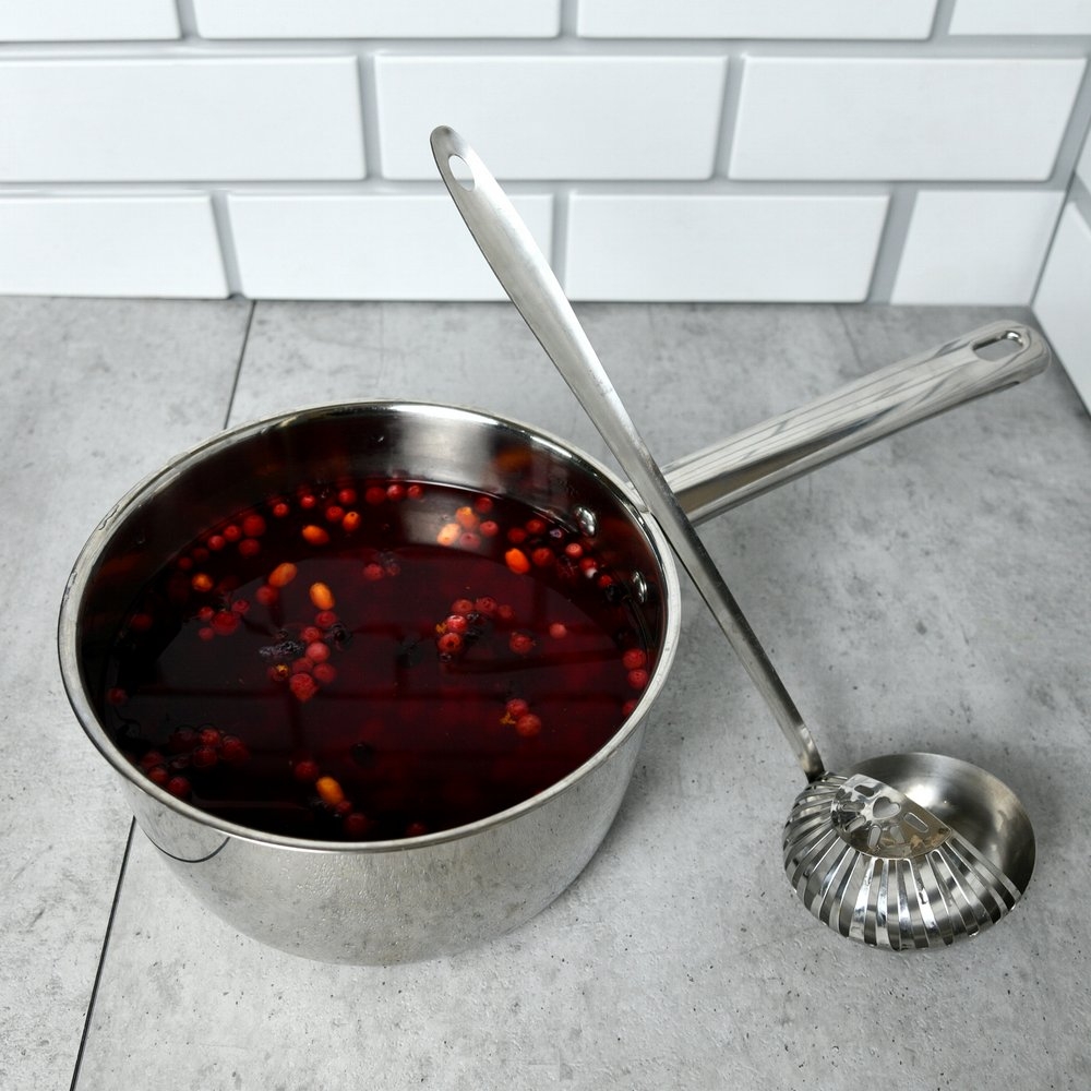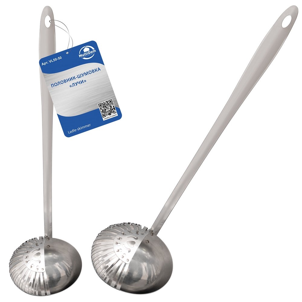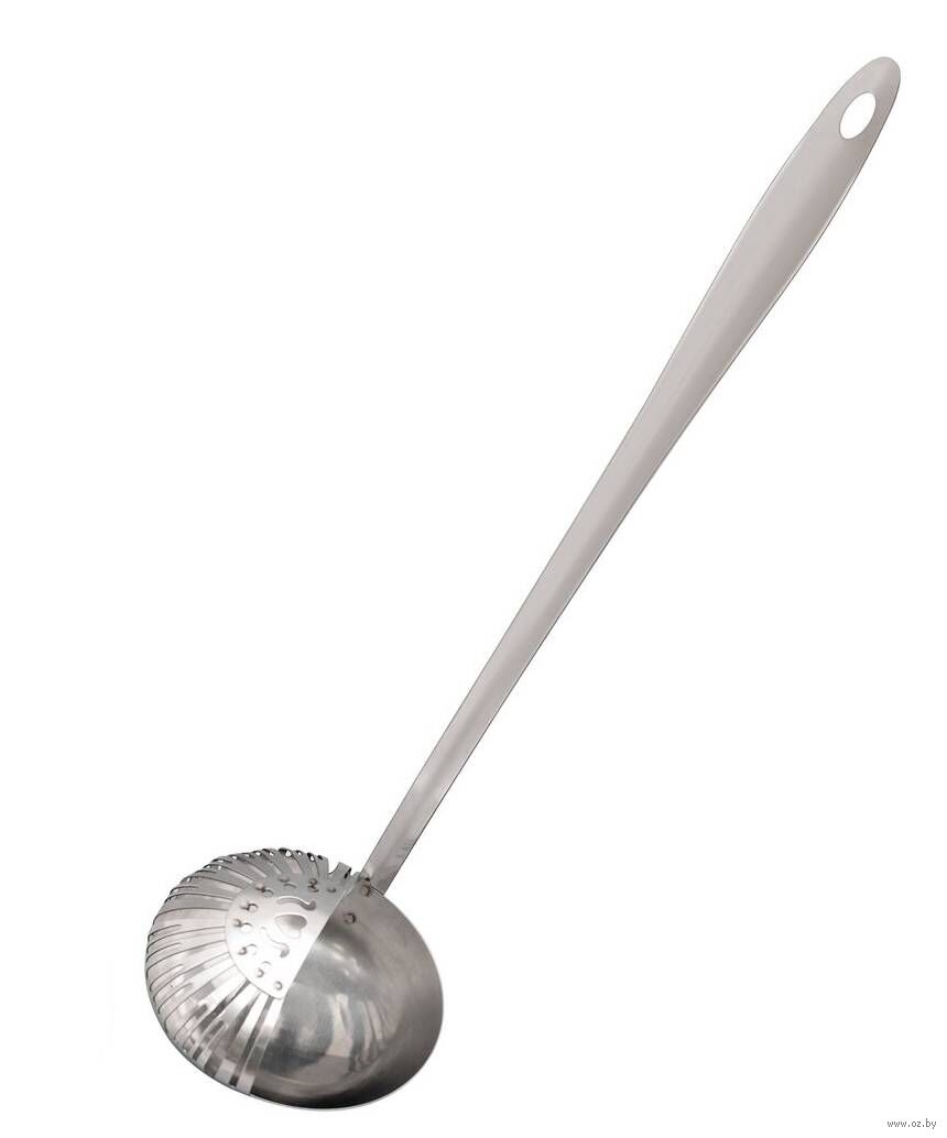 Половник-шумовка решает 2 задачи: во-первых, используется для раскладывания первых блюд, разливания компотов, морсов, киселей; во-вторых, поможет вам снять пенку, разложить вареники и пельмени по тарелкам.