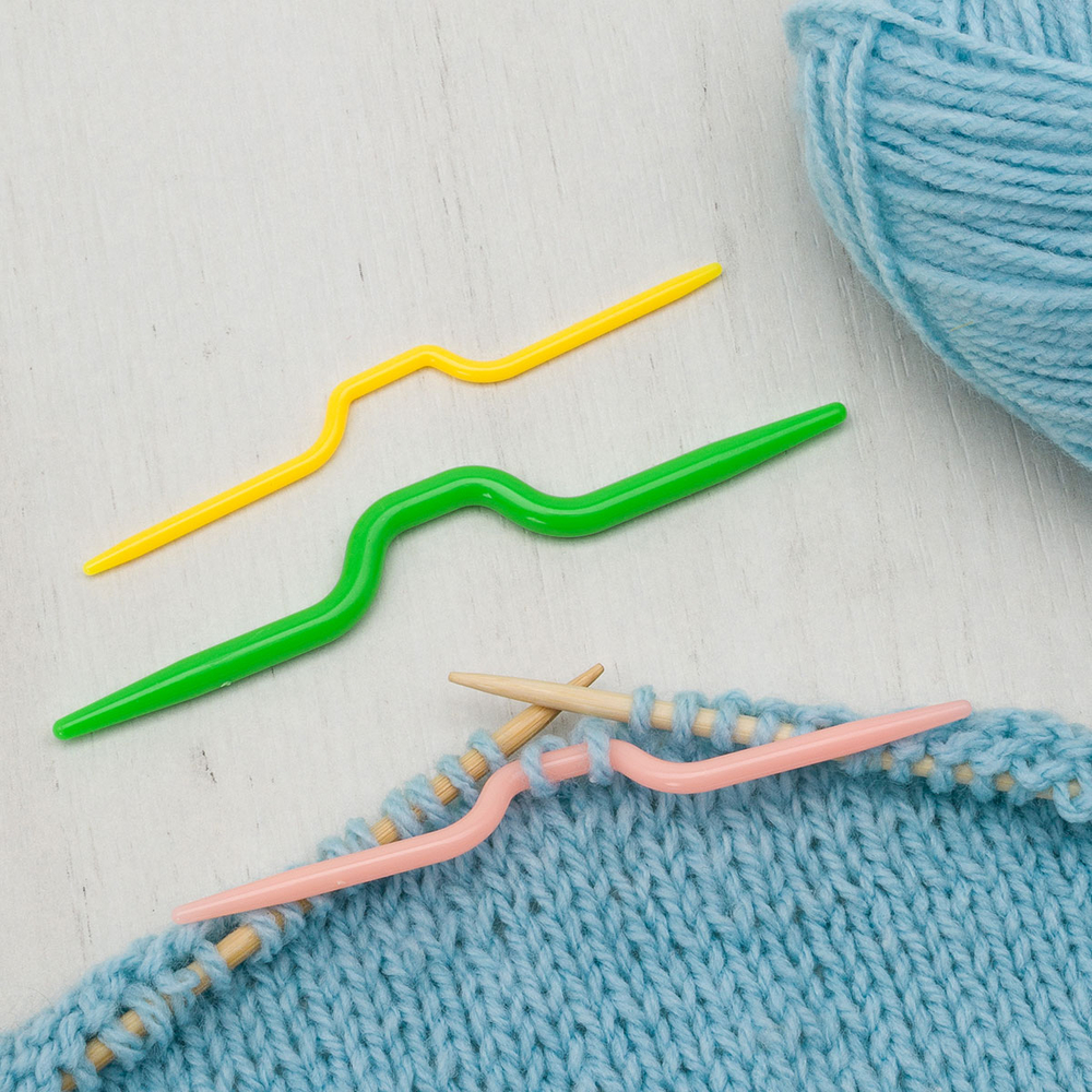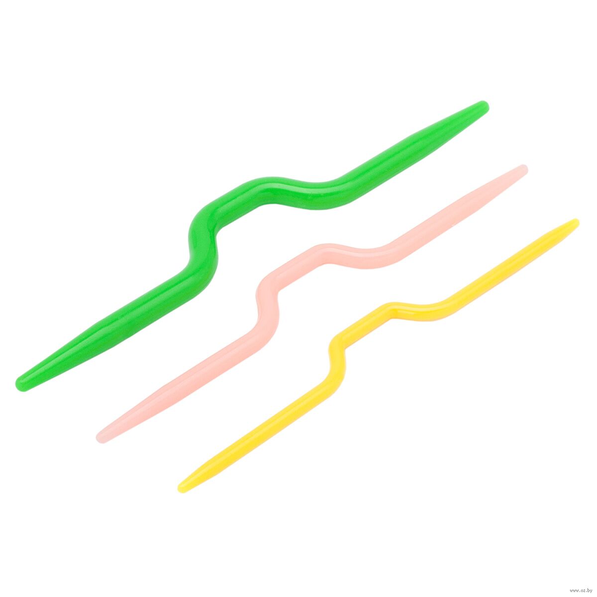 Вспомогательные изогнутые спицы используют при вязании объемных узоров (косы, араны), а также в качестве иглы для поднятия петель или временного снятия петель.