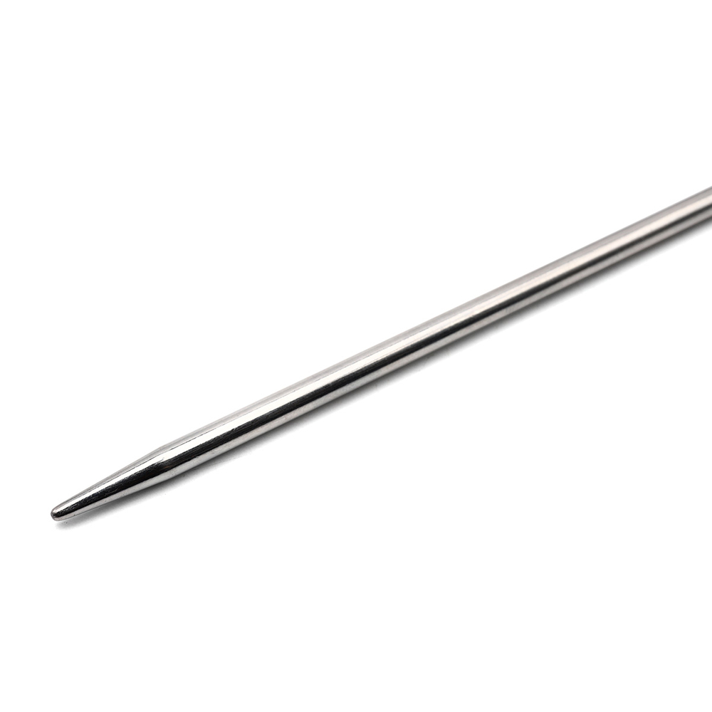 Изготовлены из латуни, не подвержены коррозии. Подходят для шерсти, хлопка, акрила и других нескользящих материалов. Гладкая поверхность, соприкасаясь с пряжей, не нарушает структуру нити. Концы спиц закруглены, чтобы предотвратить травмирование пальцев.