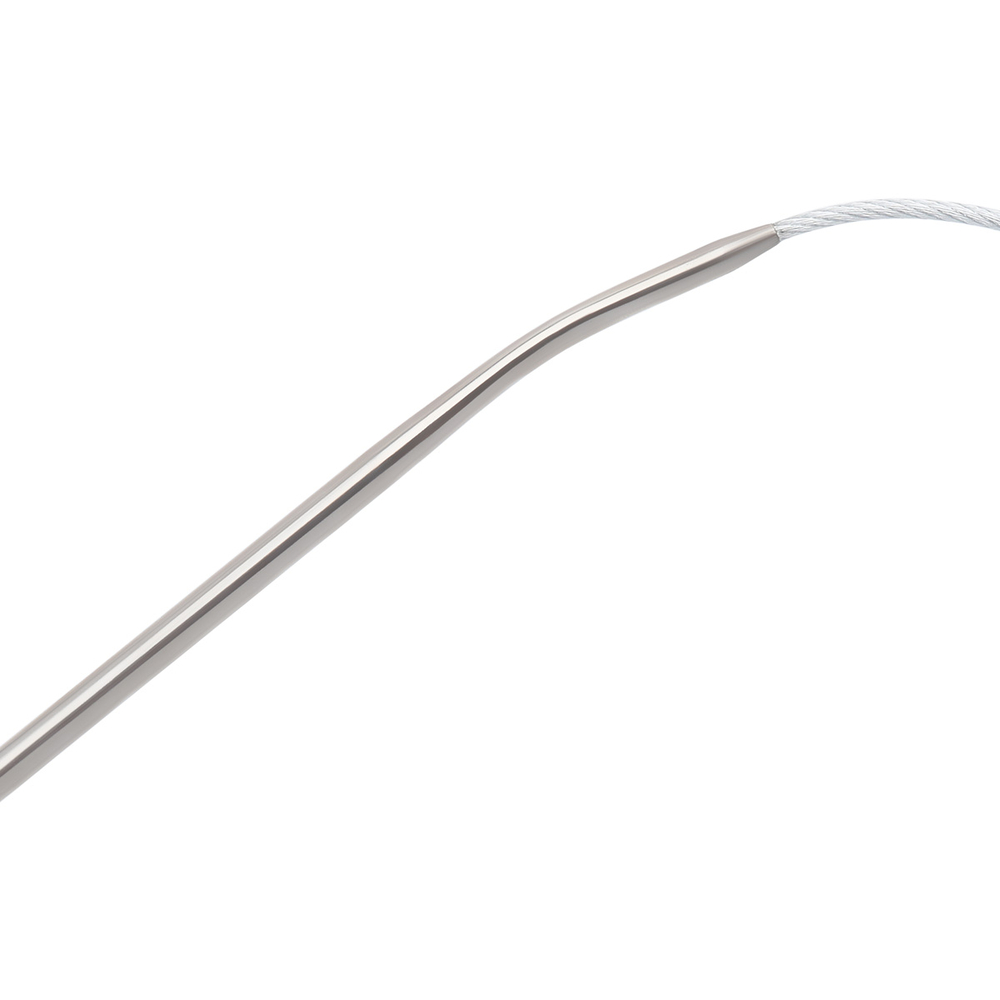 Концы спиц имеют слегка закругленную форму и не травмируют пальцы. Это особенно актуально для длительных вязальных сессий, когда комфорт рук имеет первостепенное значение. Закругленные концы легко подцепляют петли, увеличивая скорость вязания. Кроме того, на переходе к тросику спицы изогнуты – это позволяет петлям легко соскальзывать на тросик, не создавая дополнительных трудностей для вязальщицы. Место соединения спицы и тросика выполнено идеально гладким, поэтому волокна пряжи не цепляются. Спицы круговые в наборе позволят работать с любыми видами пряжи без лишних усилий.