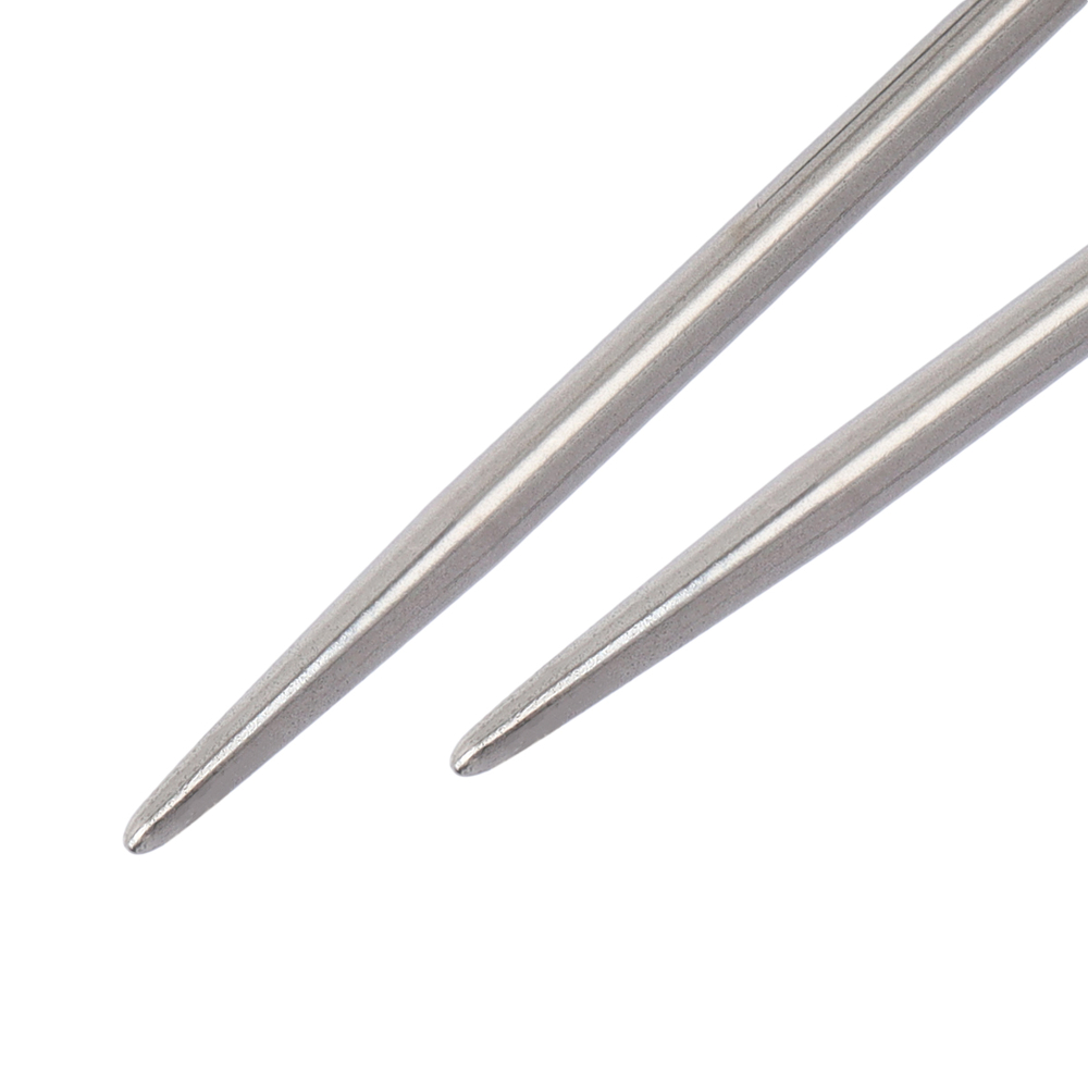 Спицы для вязания выполнены из высококачественной нержавеющей стали. Благодаря этому долговечному и универсальному материалу вы можете вязать изделия любой плотности и использовать различные типы пряжи: от тонкой шерсти до более толстых нитей.