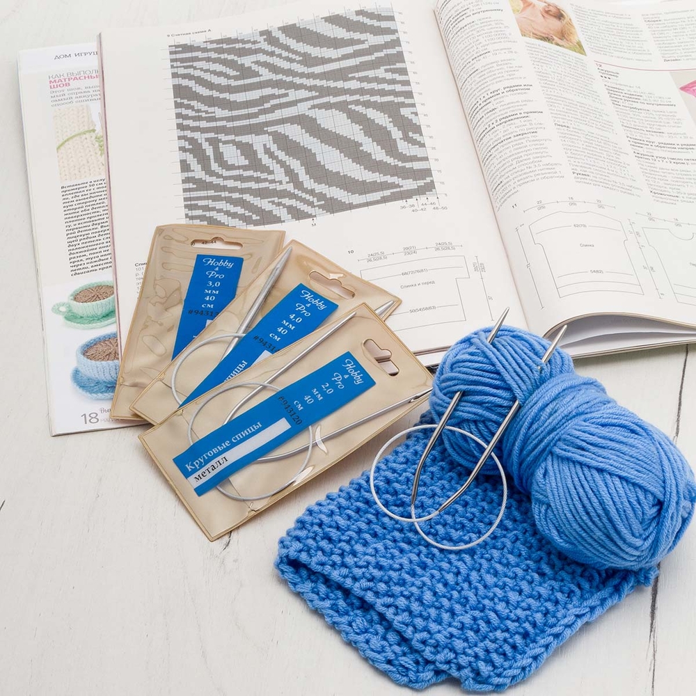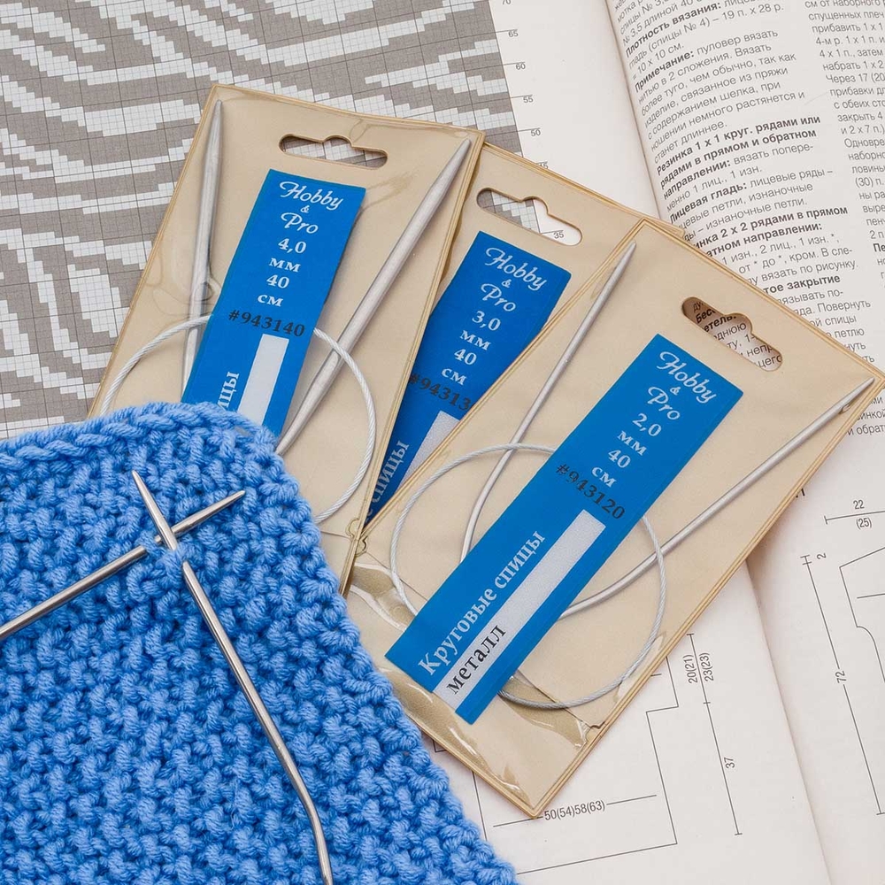 Спицы для вязания круговые из нержавеющей стали с металлическим тросиком от Hobby&Pro – идеальный инструмент для работы как в круговой, так и в прямой техниках вязания. В набор входят спицы круговые трёх размеров, с помощью которых можно создавать разнообразные вязаные изделия, такие как свитеры, манишки, шапки, снуды, а также более объемные вещи и широкие полотна: пледы и коврики.