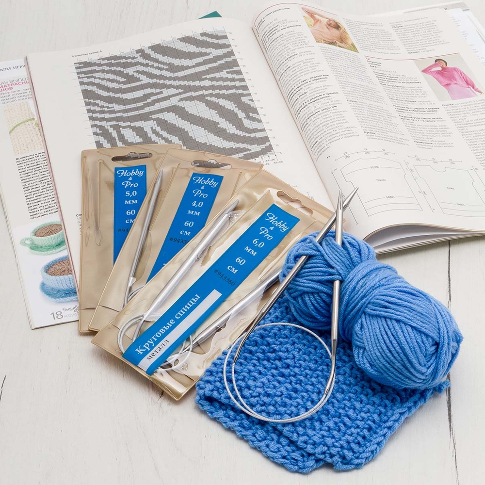Спицы для вязания круговые из нержавеющей стали с металлическим тросиком от Hobby&Pro – идеальный инструмент для работы как в круговой, так и в прямой техниках вязания. В набор входят спицы круговые трёх размеров, с помощью которых можно создавать разнообразные вязаные изделия, такие как свитеры, манишки, шапки, снуды, а также более объемные вещи и широкие полотна: пледы и коврики.