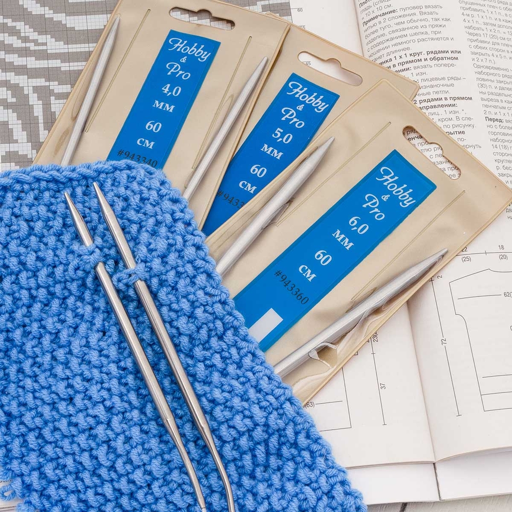 Спицы для вязания выполнены из высококачественной нержавеющей стали. Благодаря этому долговечному и универсальному материалу вы можете вязать изделия любой плотности и использовать различные типы пряжи: от тонкой шерсти до более толстых нитей.