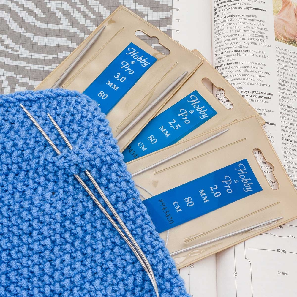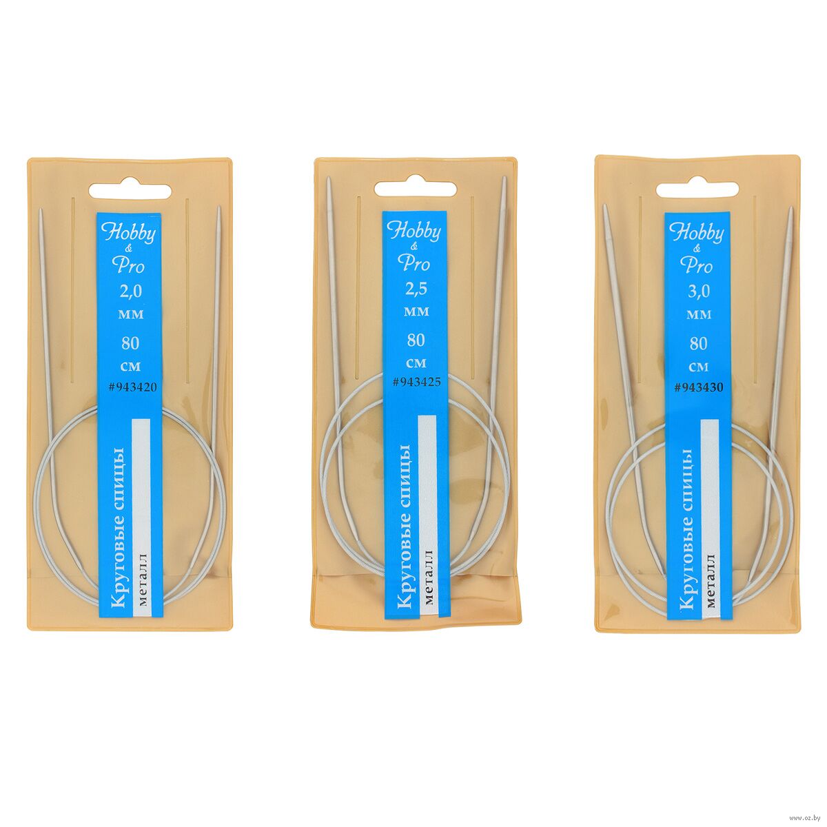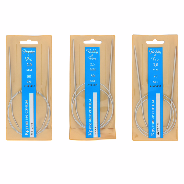 Спицы для вязания круговые из нержавеющей стали с металлическим тросиком от Hobby&Pro – идеальный инструмент для работы как в круговой, так и в прямой техниках вязания. В набор входят спицы круговые трёх размеров, с помощью которых можно создавать разнообразные вязаные изделия, такие как свитеры, манишки, шапки, снуды, а также более объемные вещи и широкие полотна: пледы и коврики.