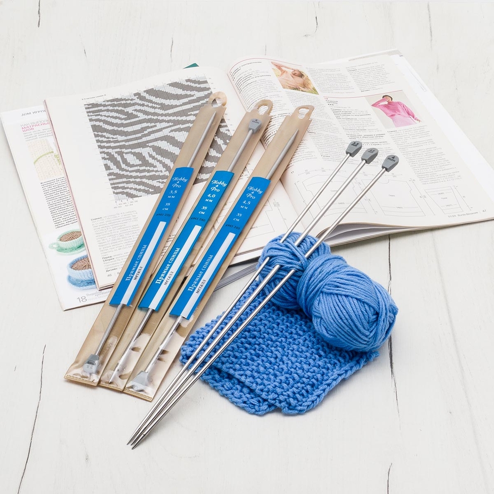 Спицы для вязания прямые от бренда Hobby&Pro – незаменимые инструменты вязальщиц для создания разнообразных изделий, таких как шарфы, свитеры, кардиганы, а также множества других уникальных вещей. Эти спицы идеально подходят как для начинающих, так и для опытных мастериц. В наборе представлено три упаковки определенного размера. В каждой упаковке находятся две спицы с ограничителями, на которых нанесена маркировка размера, значительно упрощающая процесс выбора необходимых инструментов для конкретного проекта. Это особенно важно, так как разные виды пряжи требуют использования спиц определенного диаметра.
