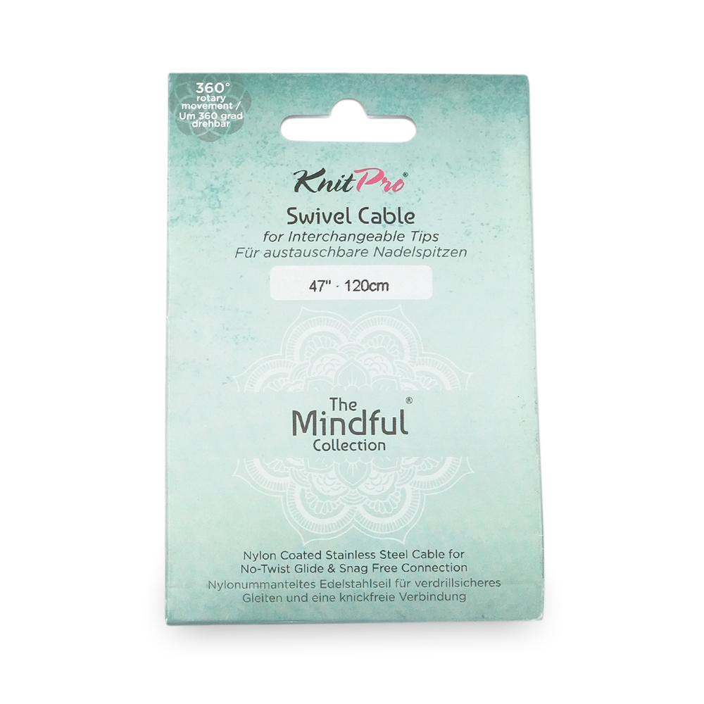 Тросик поворотный разработан специально для съемных спиц "Mindful", однако подойдет для любых съемных спиц KnitPro. Изготовлен из нержавеющей стали и нейлона, не перегибается, легко вращается на 360 градусов, поэтому практически не скручивается. Соединение между спицей и тросиком получается особенно гладким, поэтому зацепки исключены.