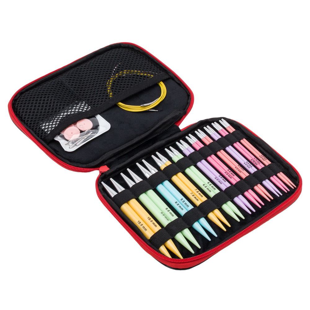 Набор упакован в мягкий чехол на молнии, обеспечивающий аккуратное и безопасное хранение инструментов. Набор спиц в чехле – это всегда отличный подарок для вязальщицы.