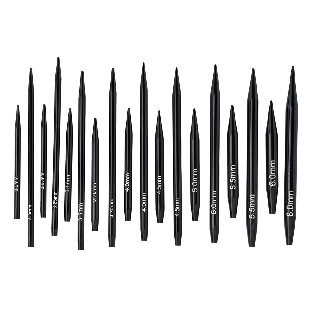 На каждую спицу нанесена маркировка с указанием размера: 3 мм, 3,25 мм, 3,5 мм, 3,75 мм, 4 мм, 4,5 мм, 5 мм, 5,5 мм, 6 мм.