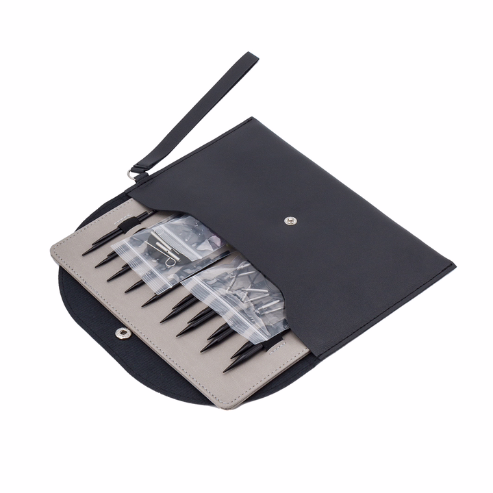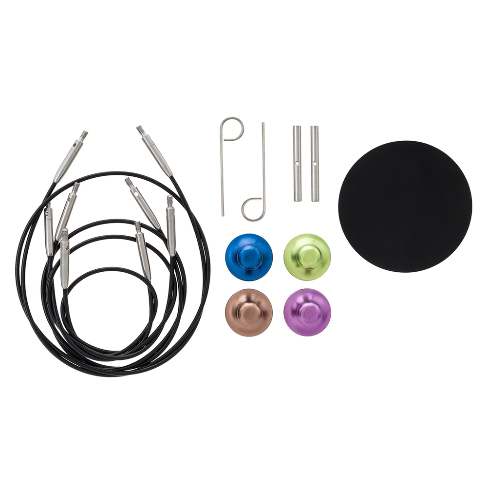 Качество соединения безупречно – тросик надежно фиксируется на спице, обеспечивая надежное и прочное крепление. Также в наборе вы найдете сменные тросики, заглушки и ключики для тросиков, коннекторы, патч для удержания спицы. Все вязальные принадлежности компактно упакованы в чехол на кнопке, который легко брать с собой в дорогу или на мастер-классы.