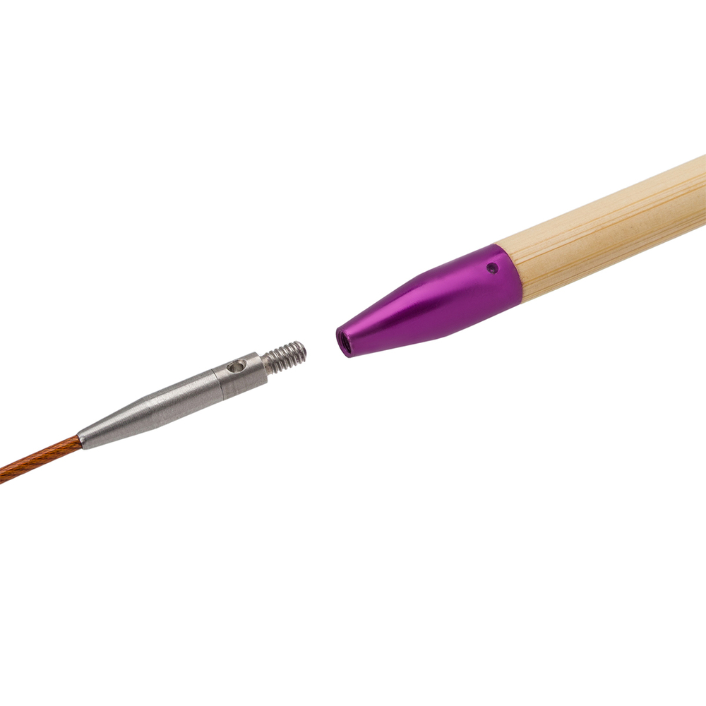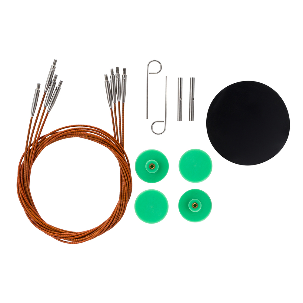 Качество соединения безупречно – тросик надежно фиксируется на спице, обеспечивая прочное крепление. Также в наборе вы найдете сменные тросики, заглушки и ключик для тросика, коннекторы, патч для удержания спицы. Все вязальные принадлежности компактно упакованы в чехол на молнии, который легко брать с собой в дорогу или на мастер-классы.