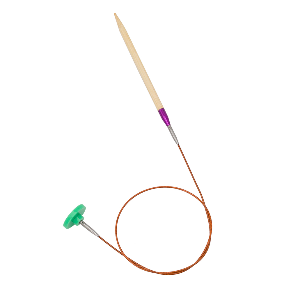 Съемные спицы со сменными тросиками можно легко адаптировать под любой масштаб работы: от компактных изделий вроде воротника или манишки до крупных проектов, таких как платье или покрывало.