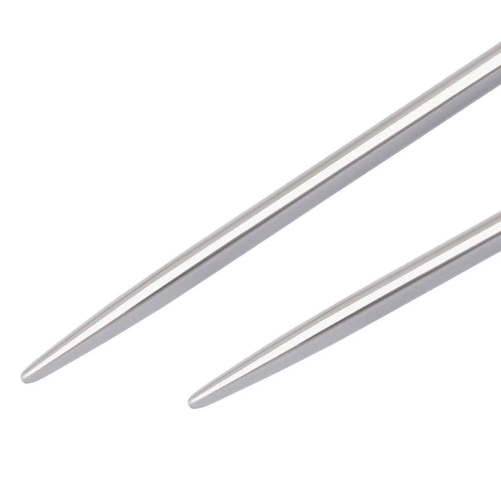Концы спиц слегка закруглены, не травмируют пальцы, не расщепляют пряжу, при этом легко подцепляют петлю, повышая скорость вязания и обеспечивая комфорт.