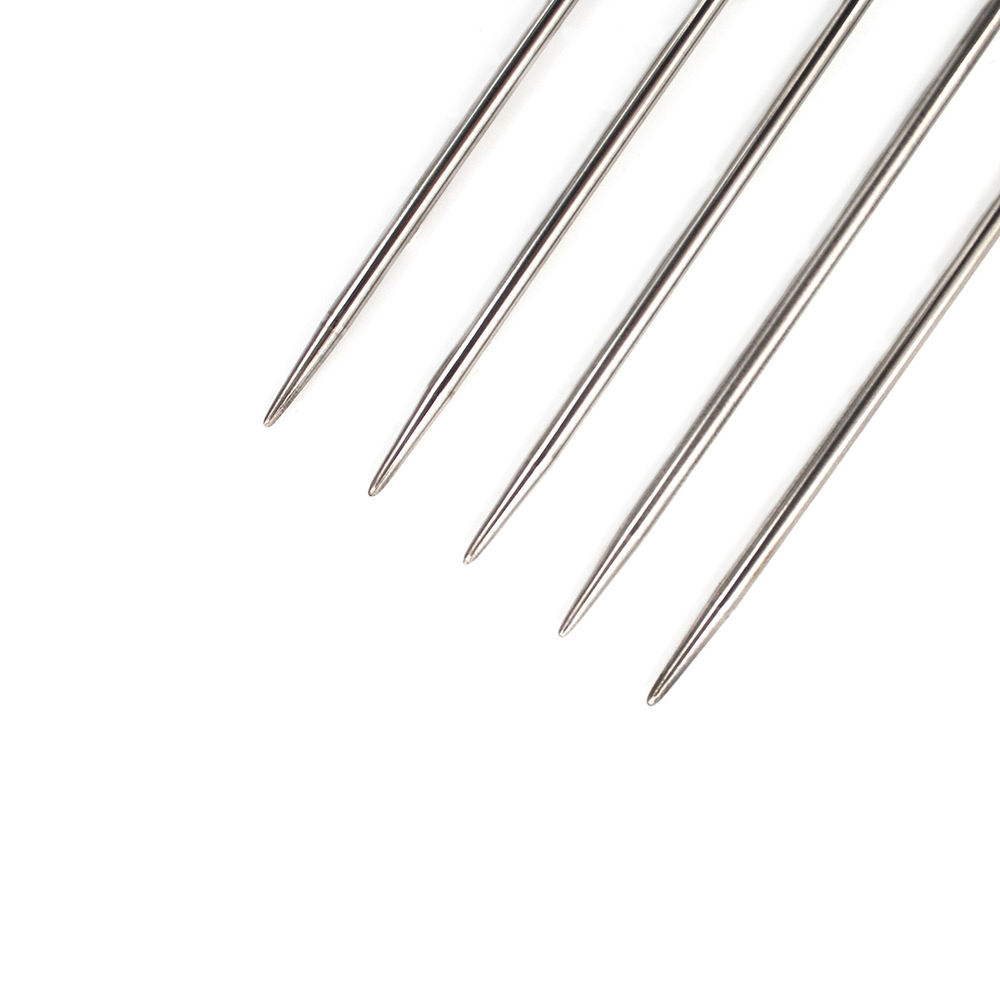 Концы спиц слегка закруглены, не травмируют пальцы, не расщепляют пряжу, при этом легко подцепляют петлю, повышая скорость вязания и обеспечивая комфорт.