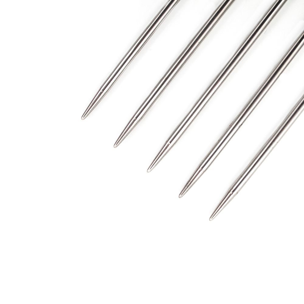 Концы спиц слегка закруглены, не травмируют пальцы, не расщепляют пряжу, при этом легко подцепляют петлю, повышая скорость вязания и обеспечивая комфорт.
