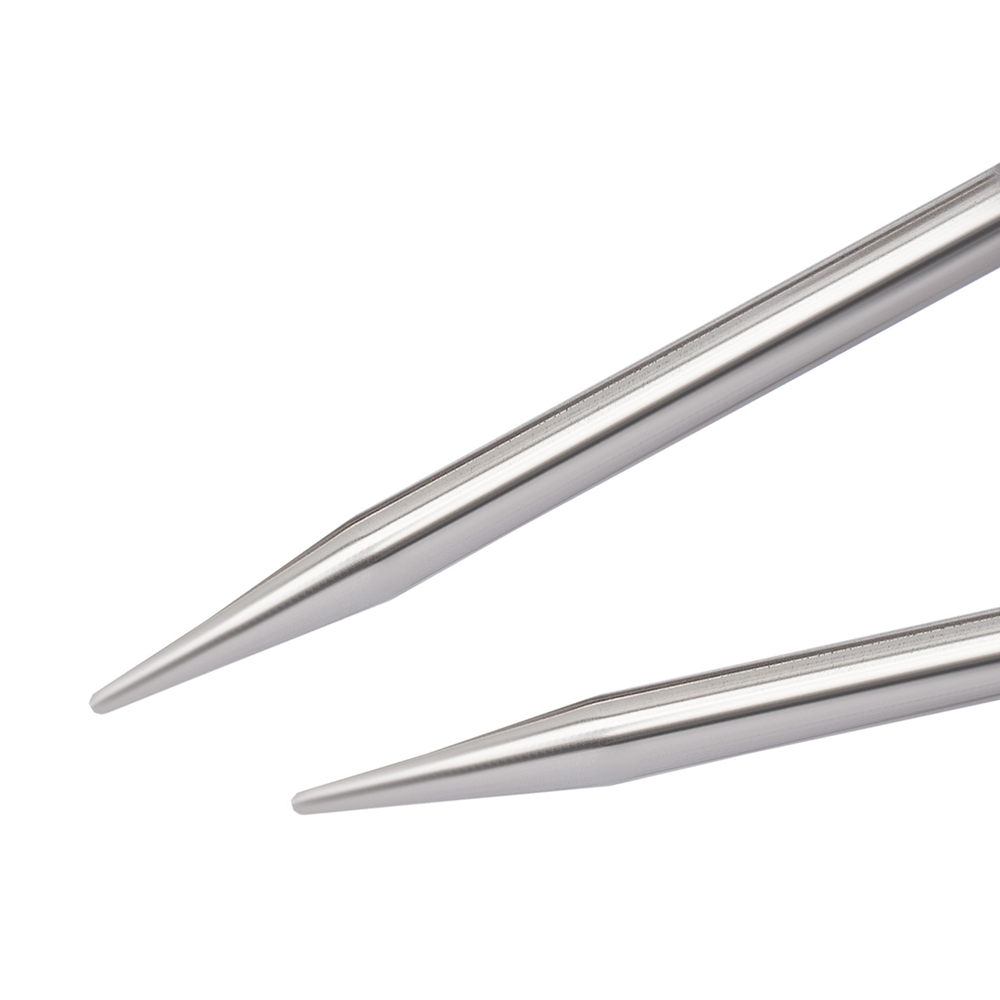 Концы спиц слегка закруглены, не травмируют пальцы, не расщепляют пряжу, при этом легко подцепляют петлю, повышая скорость вязания и обеспечивая комфорт.
