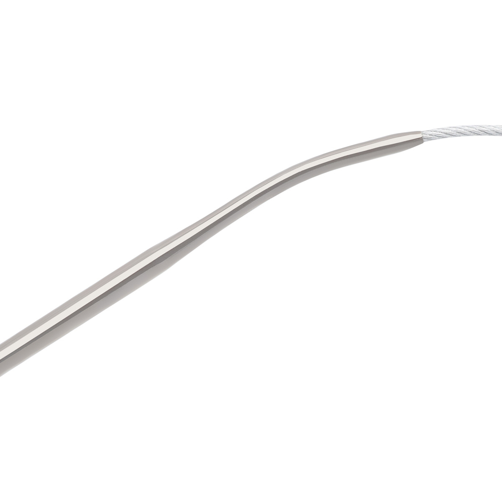 Спицы очень гладкие, поэтому пряжа хорошо скользит и не деформируется, сохраняет структуру и ворс пряжи. Концы спиц слегка закруглены, не травмируют пальцы, не расщепляют пряжу, при этом легко подцепляют петлю, повышая скорость вязания и обеспечивая комфорт. На переходе к тросику спицы изогнуты, чтобы петли легко соскальзывали на тросик. Место соединения спицы и тросика идеально гладкое – не цепляет волокна пряжи. Металлический тросик с тонким полимерным покрытием – прочный, гибкий, гладкий, не перекручивается в процессе работы.
