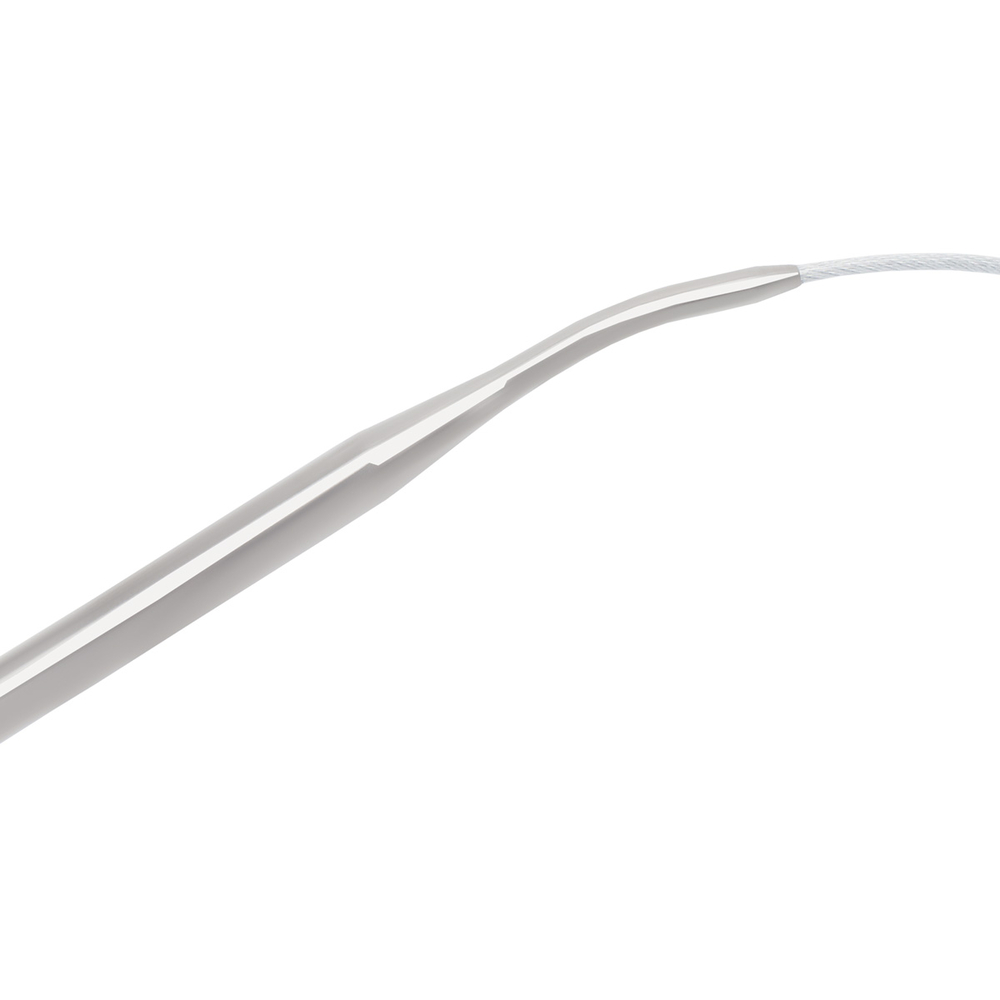 Спицы очень гладкие, поэтому пряжа хорошо скользит и не деформируется, сохраняет структуру и ворс пряжи. Концы спиц слегка закруглены, не травмируют пальцы, не расщепляют пряжу, при этом легко подцепляют петлю, повышая скорость вязания и обеспечивая комфорт. На переходе к тросику спицы изогнуты, чтобы петли легко соскальзывали на тросик. Место соединения спицы и тросика идеально гладкое – не цепляет волокна пряжи. Металлический тросик с тонким полимерным покрытием – прочный, гибкий, гладкий, не перекручивается в процессе работы.
