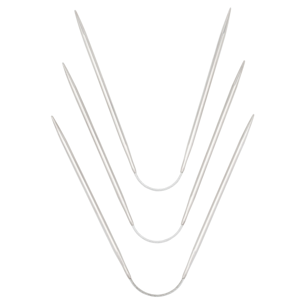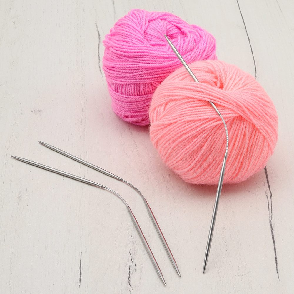 Кроме того, эти спицы можно использовать как вспомогательные при вязании объёмных кос или узоров. За счет гибкой средней части, металлическому тросику, спицы удобно лежат в руках, и вы с легкостью реализуете изделия даже самого маленького диаметра. Количество переходов при вязании сокращается вдвое, поэтому сам процесс идет намного быстрее.