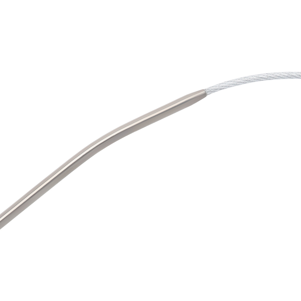 На переходе к тросику спицы изогнуты, чтобы петли легко соскальзывали на тросик. Место соединения спицы и тросика идеально гладкое – не цепляет волокна пряжи. Металлический тросик с тонким полимерным покрытием – прочный, гибкий, гладкий и не перекручивается в процессе работы.