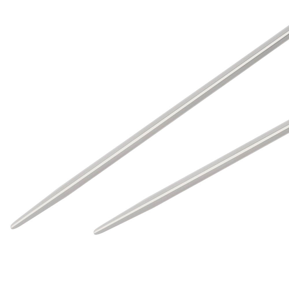Круговые спицы изготовлены из нержавеющей стали, позволяющей вязать изделие любой плотности из абсолютно любого типа пряжи. Спицы очень гладкие, поэтому пряжа хорошо скользит и не деформируется, сохраняет структуру и ворс пряжи. Концы спиц слегка закруглены, не травмируют пальцы, не расщепляют пряжу, при этом легко подцепляют петлю.