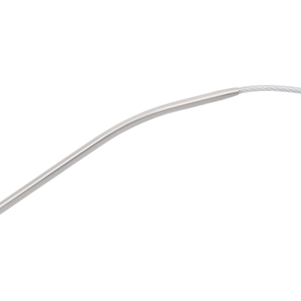 На переходе к тросику спицы изогнуты, чтобы петли легко соскальзывали на тросик. Место соединения спицы и тросика идеально гладкое – не цепляет волокна пряжи. Металлический тросик с тонким полимерным покрытием – прочный, гибкий, гладкий и не перекручивается в процессе работы.