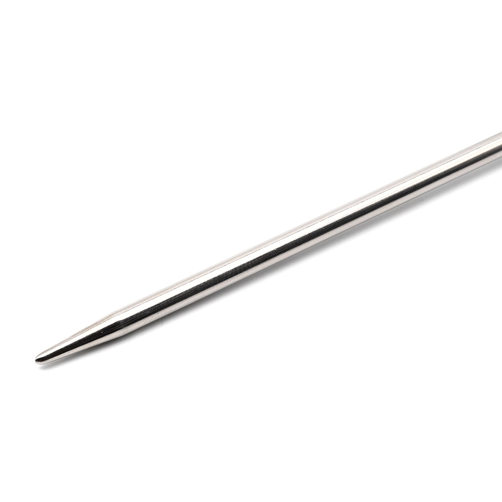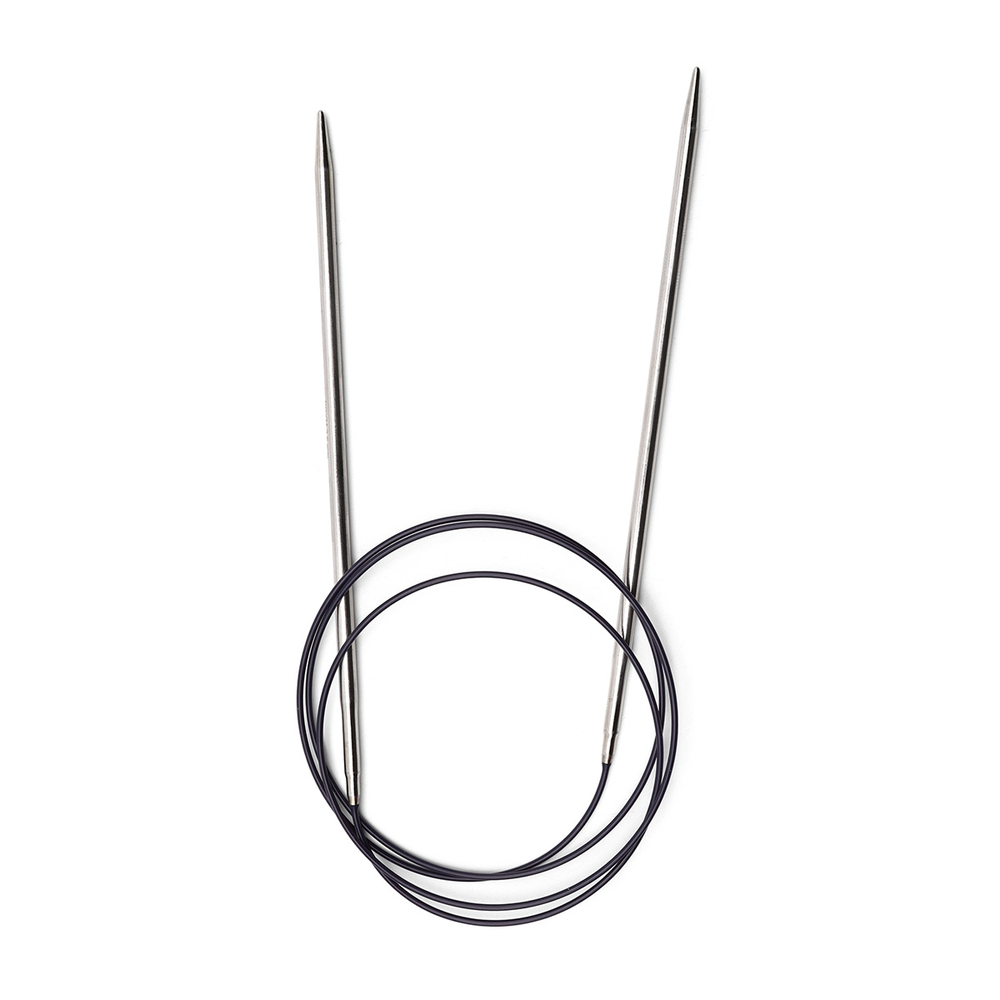 Спицы для вязания Prym изготовлены из латуни с серебристым напылением. Кончики спиц закругленные. Спицы скреплены гибким пластиковым шнуром. Они прочные, легкие, гладкие, удобные в использовании. Круговые спицы наиболее удобны для выполнения деталей и изделий, не имеющих швов. Короткими круговыми спицами вяжут бейки горловины, воротники-гольф, длинными спицами можно вязать по кругу целые модели.