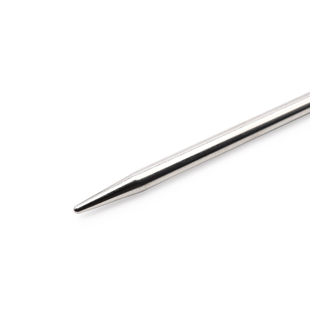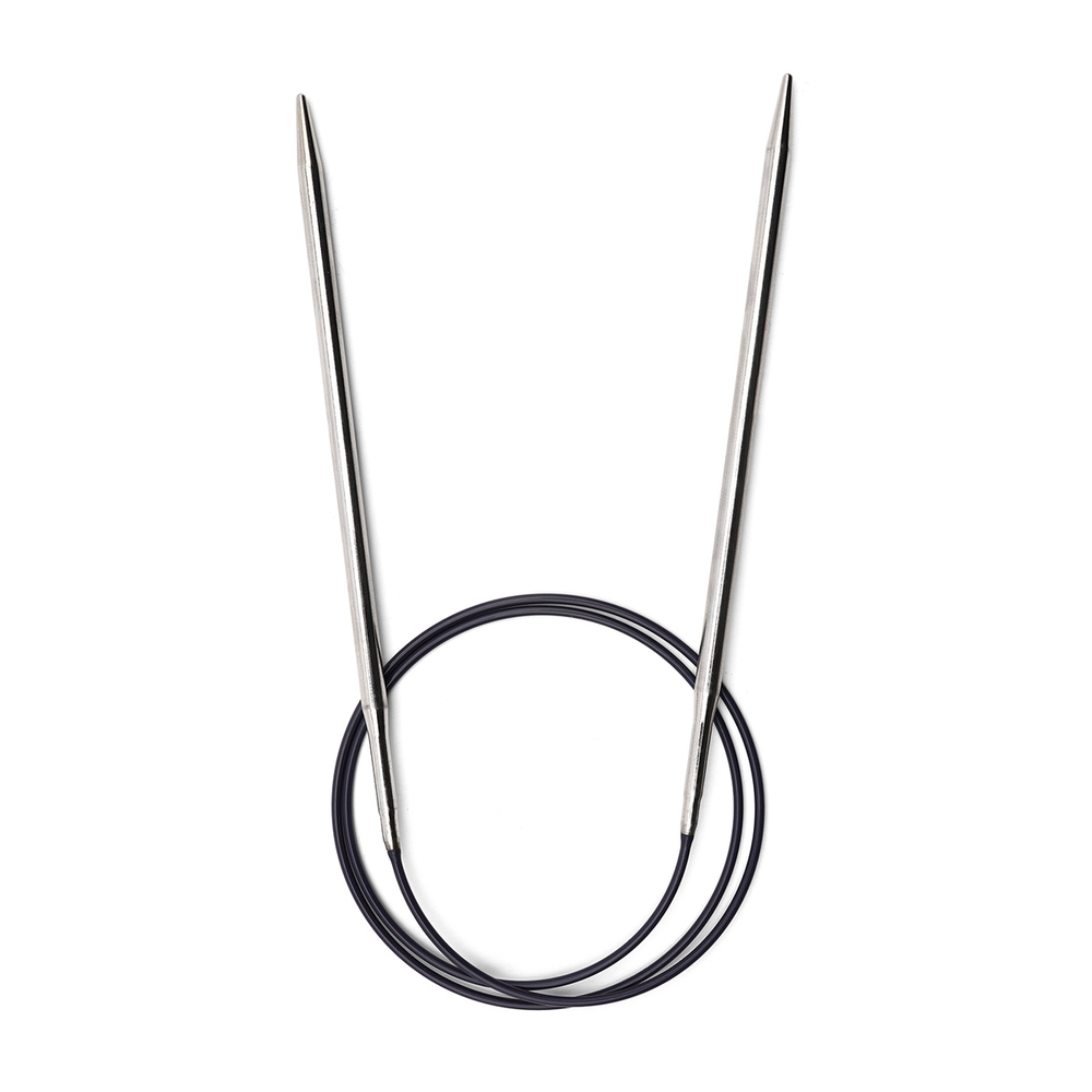 Круговые спицы серебристого цвета из латуни с гибким тросиком подходят для вязания горловины, высоких воротников, изделий, не имеющих швов. Кончики спиц закругленные. Спицы скреплены гибким пластиковым шнуром. Они прочные, легкие, гладкие, удобные в использовании. Круговые спицы наиболее удобны для выполнения деталей и изделий, не имеющих швов. Короткими круговыми спицами вяжут бейки горловины, воротники-гольф, длинными спицами можно вязать по кругу целые модели.