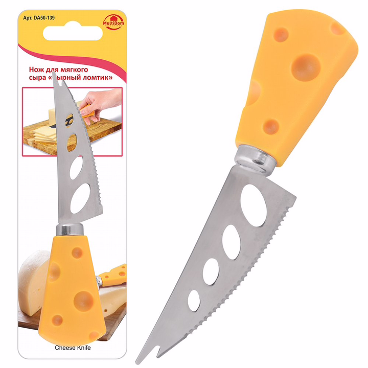 Сырная тарелка и аппетитные закуски из сыра, пожалуй, относятся к самым изысканным блюдам для фуршетов. Как здорово, что для приготовления и подачи существует специальный инструмент, с помощью которого закуски получатся как от шеф-повара! Нож используется для нарезки мягкого сыра. Эргономичная форма ручки и специальное лезвие делают этот процесс быстрым и удобным. Инструмент имеет отверстия в лезвии, которые сводят к минимуму прилипание сыра к поверхности ножа. Зазубрины на нижней части ножа позволяют с легкостью нарезать мягкие сыры, покрытые твердой оболочкой. Благодаря креативному дизайну ручки ножа он может стать отличным подарком ценителям сыров!