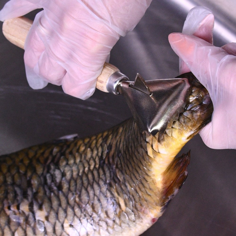 Особенность прибора заключается в специальном устройстве компактного скребка, оснащённого короткими острыми зубчиками. Такая конструкция предотвращает разбрасывание чешуи и даёт возможность очищать рыбу по всей поверхности. При помощи ножа, можно разрезать брюхо рыбы и очистить его от внутренностей.