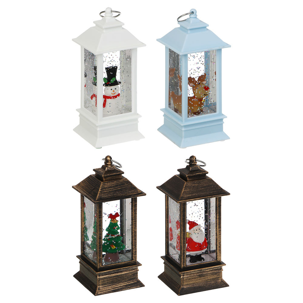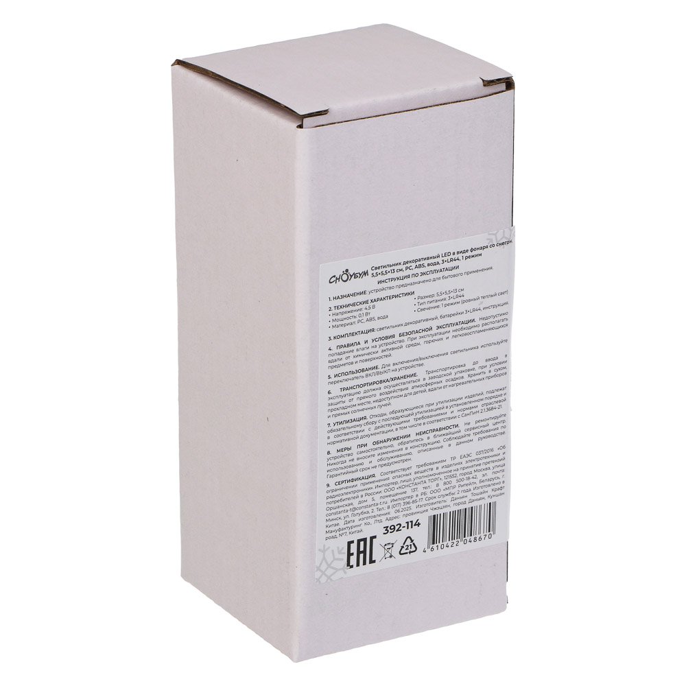 Светильник декоративный LED в виде фонаря со снегом, размер 5,5x5,5х13 см с 1 режимом работы подсветки наполнит пространство атмосферой волшебства и зимней сказки.