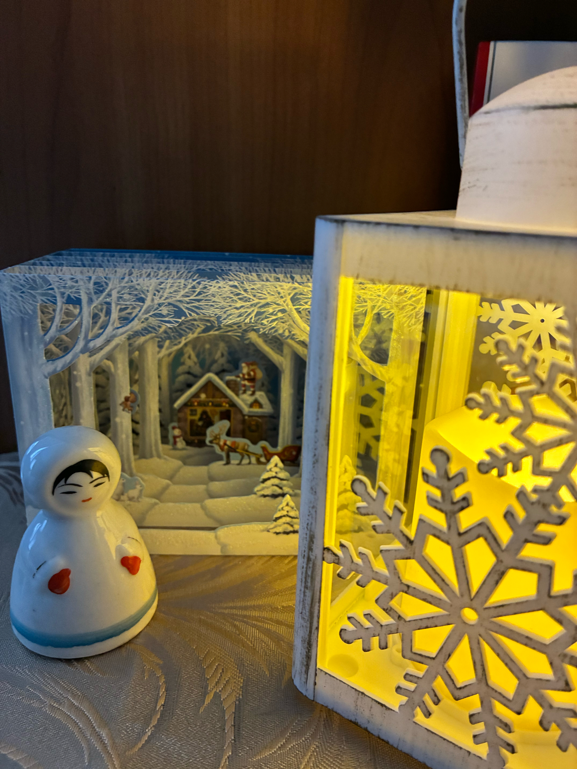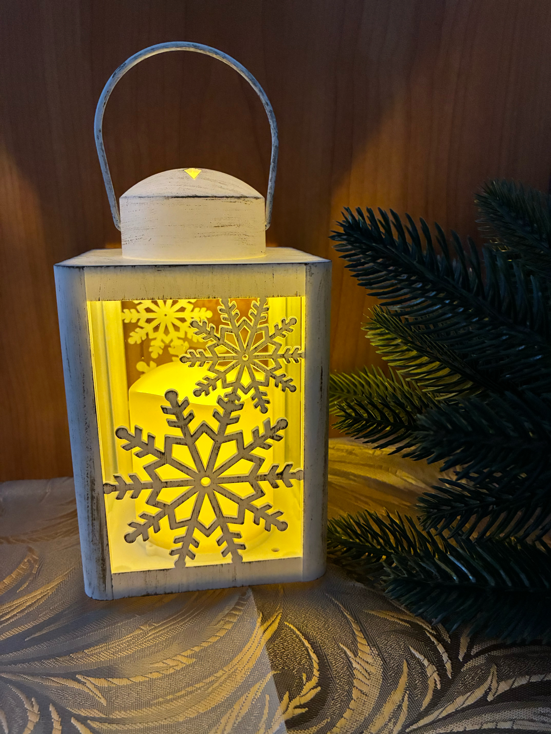 Светильник декоративный "Фонарь со снежинками" (белый)
