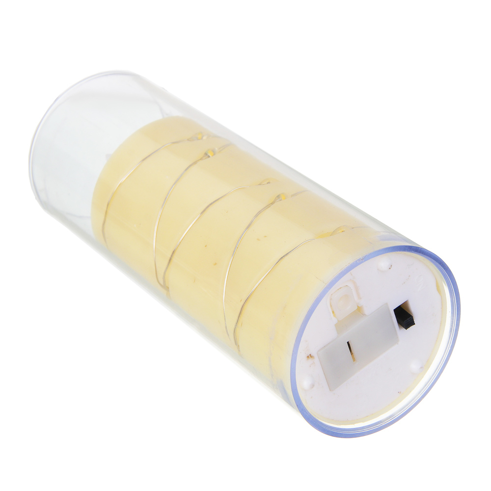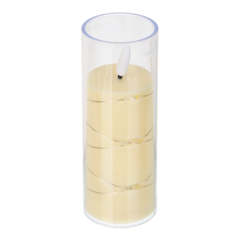 Свечка выполнена из безопасных материалов: полипропилена и полистирола, имеет реалистичную текстуру и тёплый желтоватый оттенок.