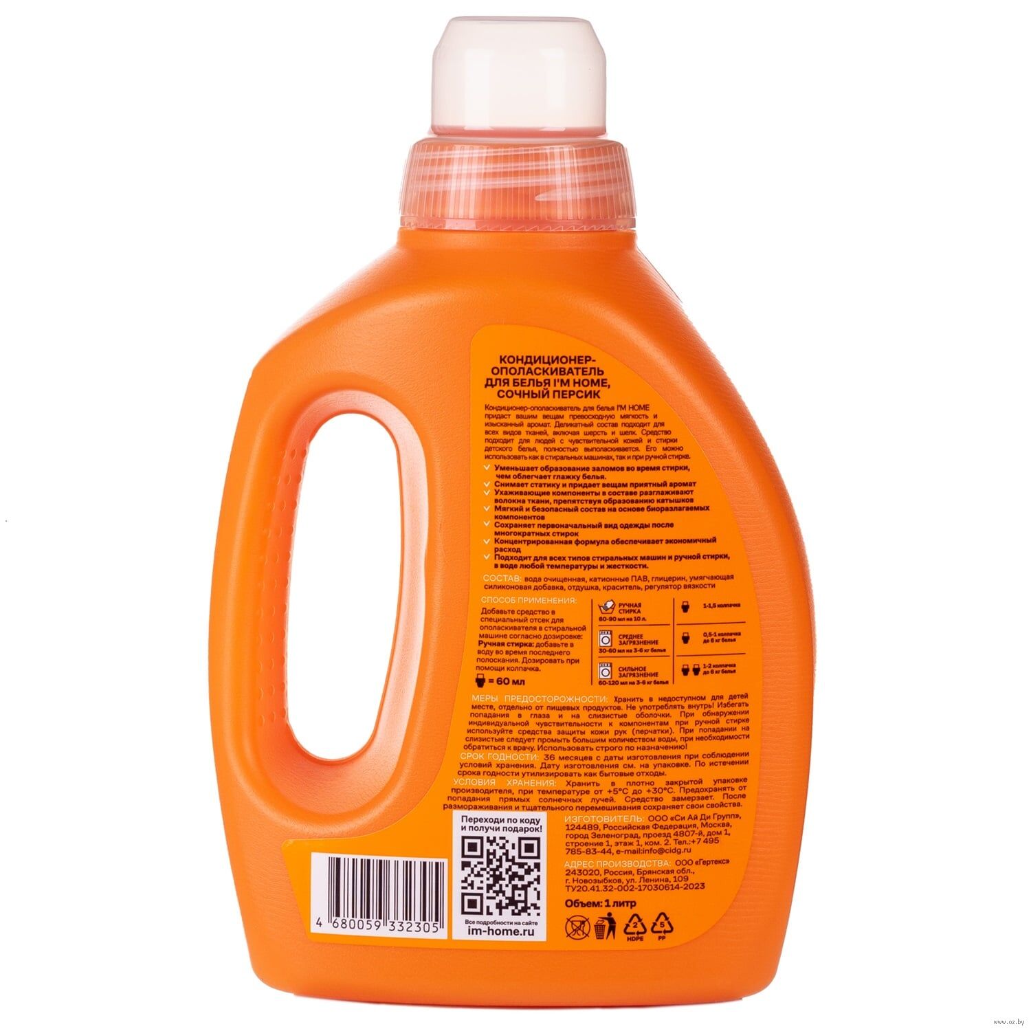 Кондиционер-ополаскиватель для белья "Сочный персик" (1 л)