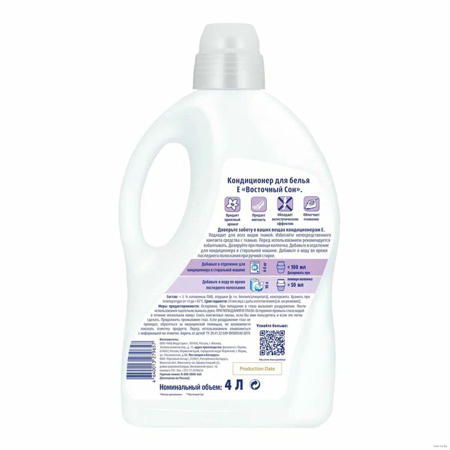 Кондиционер-ополаскиватель "Восточный сон" обеспечивает свежесть белья, придает ему приятный аромат и мягкость, облегчает глажку и обладает антистатическим эффектом.