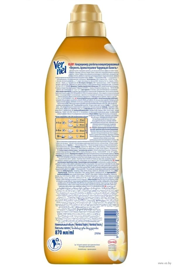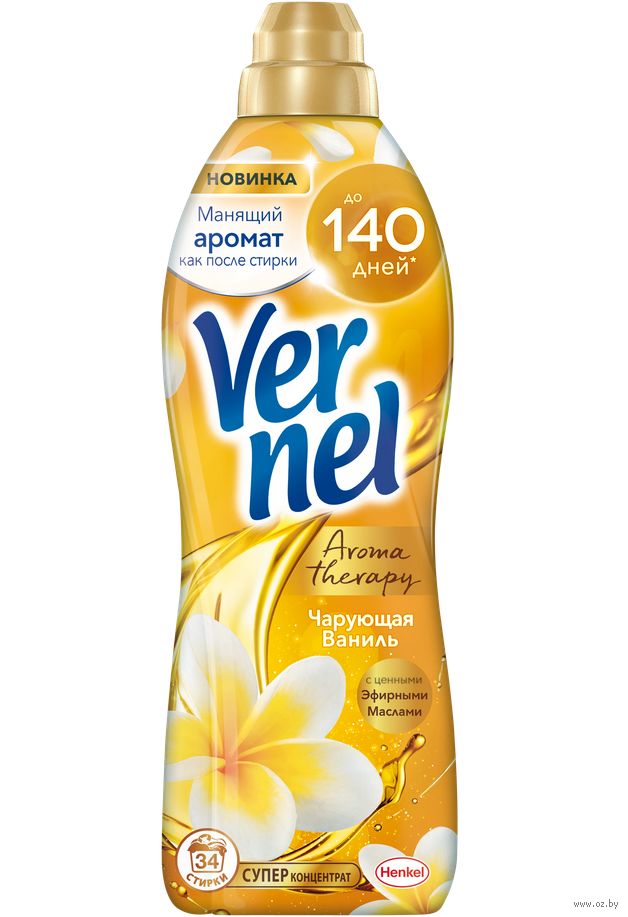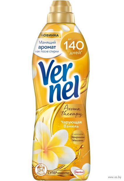 Концентрированный кондиционер для белья "Чарующая ваниль" подарит Вашему белью не только невероятную мягкость, но и великолепный аромат сладких цветков ванили, а благодаря специальным аромакапсулам в составе кондиционер для стирки Vernel позволит наслаждаться интенсивным ароматом белья до 140 дней.